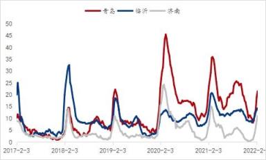 本周山东地区市场价格呈现盘整趋强的走势,但市场成交弱势,整体资源情况出现明显变化。具体来看,本周山东各市场库存情况如下: