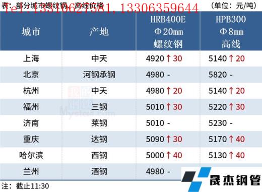◎杭州:11日早盘建材市场价格上涨20,螺沙4950中4950西城4940浙江华宏4830江苏镔鑫4830长达抗震4940线材中天5140亚新4900联鑫黄海盘螺5020。(单位:元/吨)