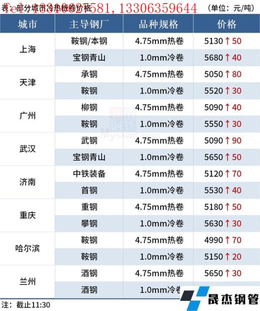 ◎乐从:11日早盘热卷市场价格上涨40,4.75以上普柳燕5090-5100,2.75普5130-5280锰5280-5300。(单位:元/吨)