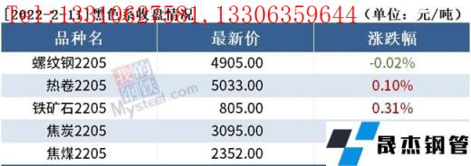 截至2月11日收盘,螺纹钢2205收4905元/吨,跌0.02%;热卷2205收5033元/吨,涨0.1%;铁矿石2205收805元/吨,涨0.31%。