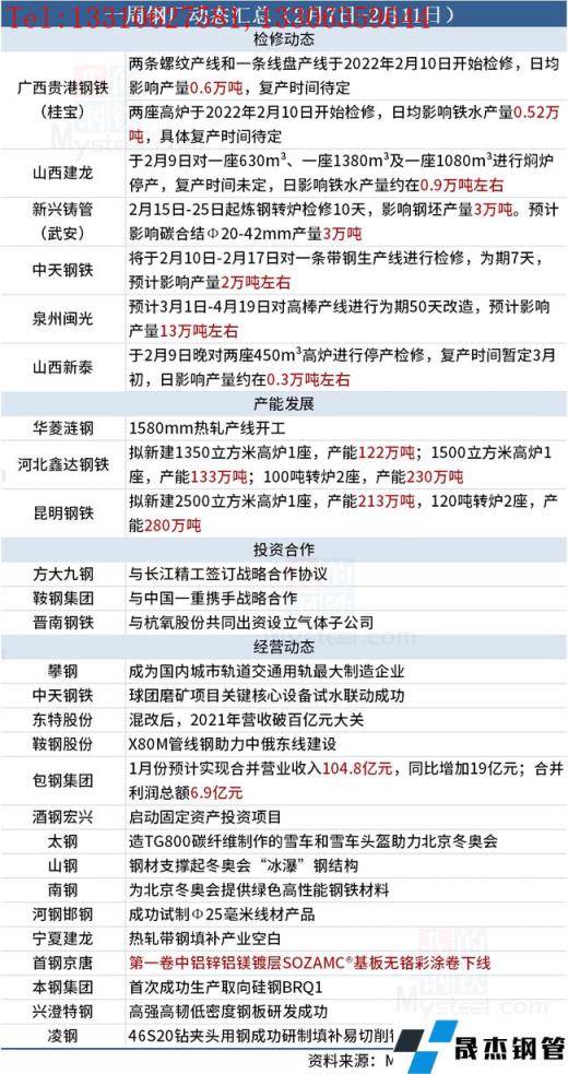 据不完全统计,本周(2月7日-2月11日)有6家无缝向日葵色视频在线观看钢管厂家发布检修动态,具体如下: