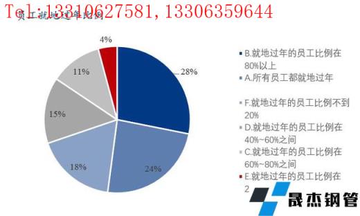 本次调研样本企业中所有员工均就地过年的占比24%,就地过年员工比例在80%以上的占比28%,就地过年员工比例在60%-80%的占比11%,就地过年员工比例在40%-60%的占比15%,就地过年员工比例40%以下的占比22%。