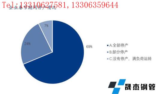 本次调研样本企业中春节期间全部停产的占比69%;部分停产的占比24%;没有停产且满负荷运转的企业占比7%。