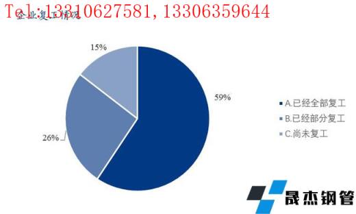 本次调研样本企业中在调研期间已全部复工的占比59%;部分复工的占比26%;尚未复工的占比15%。