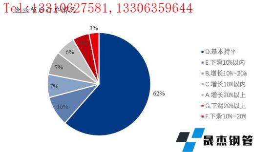 3、订单方面稳中有涨。与去年同期相比,企业的订单有增长的占比20%,其中增长10%以内的占比7%,增长10%以上的占比13%;基本持平的占比62%;当前所在企业的订单状况有所下滑的占比18%。
