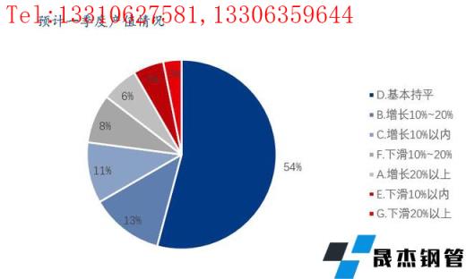 本次调研样本企业中与去年同期相比,预计企业一季度的产值有所增长的占比30%,其中增长10%以上的和增长10%以内的分别占比19%和11%;与去年同期相比,预计企业一季度的产值基本持平的占比54%;与去年同期相比,预计企业一季度的产值有所下滑的占比16%。