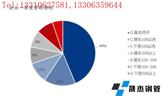 4、预计一季度营业收入有所上涨。预计企业一季度营业收入有所增长的占比32%,其中增长10%以上的和增长10%以内的均占16%;与去年同期相比,预计企业一季度营业收入基本持平的占比44%。
