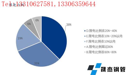 本次调研存在限电情况的企业所在地中,限电比例超过80%的占比为6%,限电比例在60%-80%的占比为6%,限电比例在20%-40%的占比为38%,限电比例为20%以内的占比为50%。