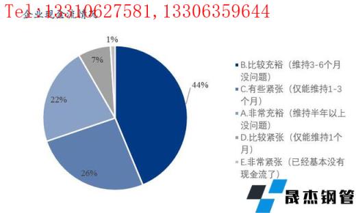 本次调研样本企业中现金流比较充裕和非常充裕的占比66%,有些紧张的占比26%,比较紧张和非常紧张的占比8%。