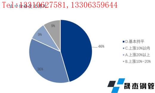 本次调研拥有出口业务的样本企业中,与去年同期相比,出口价格上涨10%以内的占比为36%,10%以上的占比为18%,基本持平的占比为46%。
