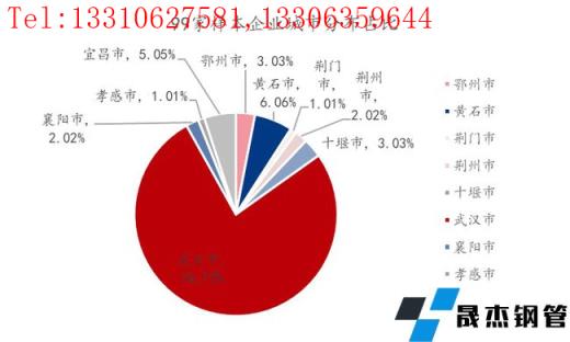 武汉市样本企业占比为76.77%,黄石市样本企业占比为6.06%,宜昌市样本企业占比为5.05%,鄂州市、十堰市样本企业均占比为3.03%,襄阳市、荆州市样本企业均占比为2.02%,荆门市、孝感市样本企业均占比为1.01%。