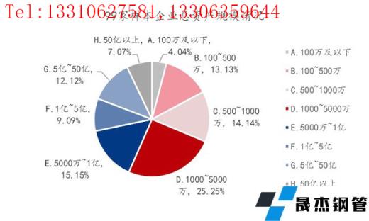 从图4上看,1000万元以下规模的企业占比为31.31%;1000万-5000万元规模的企业占比为25.25%;5000万-5亿元规模的企业占比为24.24%;5亿-50亿元规模的企业占比为12.12%;50亿元以上规模的企业占比为7.07%