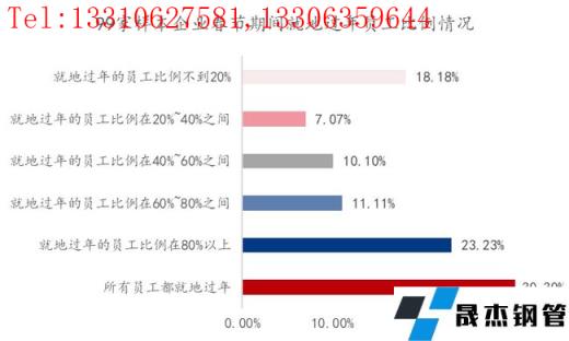 从图6上看,就地过年的员工比例不到20%的占比为18.18%;就地过年的员工比例在20%-60%的占比为17.17%;就地过年的员工比例在60%-80%的占比为11.11%;就地过年的员工比例在80%以上的占比为23.23%;所有员工都就地过年的占比为30.30%。