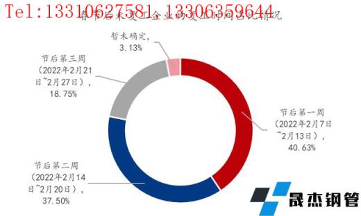 从图9上看,复工时间为节后第一周(2022年2月7日-2月13日)的占比为40.63%;节后第二周(2022年2月14日-2月20日)的占比为37,50%;节后第三周(2022年2月21日-2月27日)的占比为18.75%。