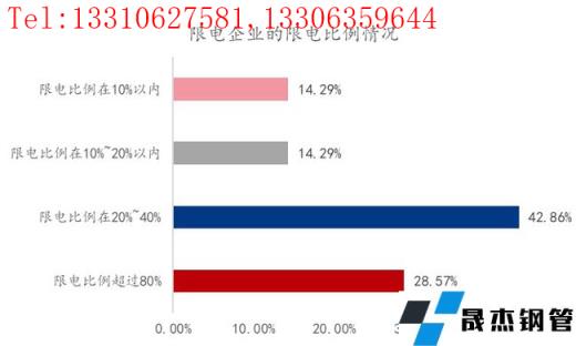 从图18上看,7.07%的样本企业存在限电影响中,具体限电比例在10%与10%-20%以内的占比28.57%;限电比例在20%-40%的占比在42.86%;限电比例超过80%的占比在28.57%。