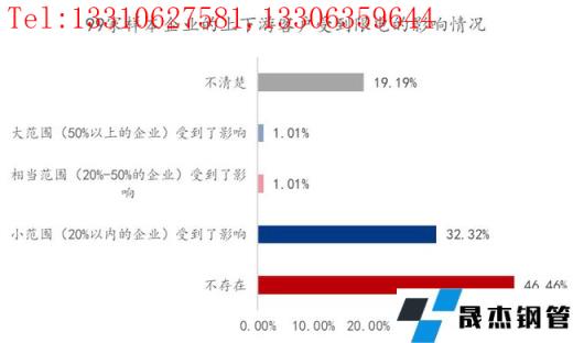 从图19上看,样本企业的上下游客户中,约46.46%的比例不存在限电的影响,小范围(20%以内的企业)受到限电影响的占比为32.32%;相当范围(20%-50%的企业)和大范围(50%以上的企业)受到限电影响的占比均为1.01%;约19.19%的样本企业不清楚是否受到限电影响。