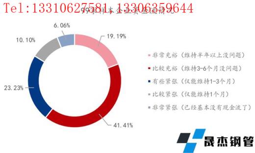 从图20上看,整体企业资金流能维持半年以上充裕条件的占比19.19%,维持3-6个月周期的占比为41.41%,仅能维持1-3个月周期的的占比为23.23%,仅能维持1个月周期的占比为10.10%,现金流非常紧张的占比为6.06%。