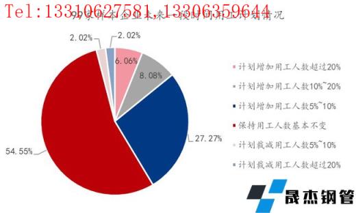 6、在供需与资金变化相对良好的环境下,企业用工情况仍存在相对明显的缺口,本次调研样本企业中在岗员工数量较实际需要存在一定或较大缺口的企业占比为39.39%,因此计划增加用工人数的企业达到41.41%,在岗员工与实际需要基本匹配和保持用工人数基本不变的占比均达到5成以上,而因在岗员工明显或大幅超过实际需要计划采取裁减用工人数的企业仅占比4.04%,总体表现出人才招聘的需求较大,而保持员工稳定性的要求也较为突出。