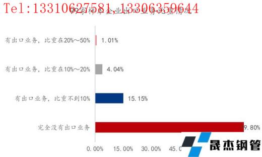 从图23上看,完全没有出口业务的企业占比为79.80%;有出口业务比重不到10%的企业占比为15.15%;有出口业务比重在10%-20%的企业占比为4.04%;有出口业务比重在20%-50%的企业占比为1.01%。