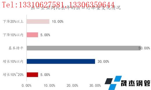 从图26上看,20.20%的出口企业中,出口价格呈现不同程度上涨的企业占比为40%,基本持平的企业占比为55%,呈现不同程度下降的企业占比为5%。
