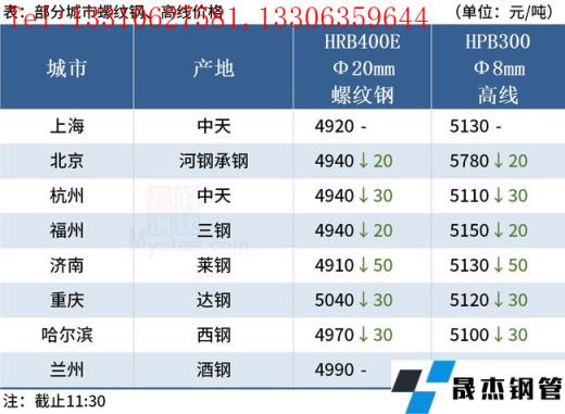 ◎北京:15日早盘建材市场价格跌20,河钢小螺纹5060-5080,大螺纹4920-4940,盘螺5100。(单位:元/吨)