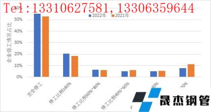 从不同行业的停工比例来看,钢铁、建材由于季节性生产和消费特征明显,停工比例达到80%的企业数量明显高于其他行业,且较去年相比,钢铁、建材行业停工比例达到80%及以上企业数量占比分别提高3.4和5.9个百分点。