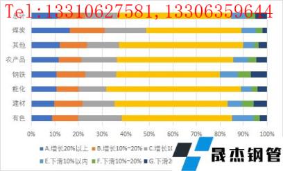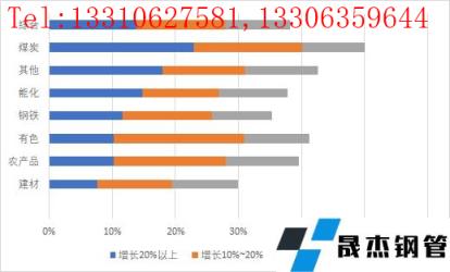 与去年同期对比来看,在经济下行压力加大的情况下,调研样本企业订单仍然出现较为可观的增长,说明国内经济的韧性较强。但值得注意的是,订单同比增加的企业数量占比较去年已经出现下滑势头,尤其是增幅超过20%订单的企业数量占比下滑4.2分百分点。从各行业情况来看,煤炭行业中50%的企业当前订单量同比都有所增长,其后依次为有色、能化、农产品等行业,均有35%以上的订单量增长,说明今年整体需求仍比较旺盛。