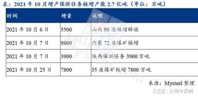对于全国多地出现的电厂“燃煤之急”以及居高不下的动力煤价格,国家发改委于10月6、7两日出台增产保供政策,对晋陕蒙主产地提出共计1.9亿吨的增产保供任务,可在安全条件允许情况下提前生产。然而,动力煤价格并未就此回归理性,反而继续开启最后的“末日狂欢”:10月19日动力煤秦港Q5500价格冲上2600元/吨大关,较10月初上涨600元/吨。