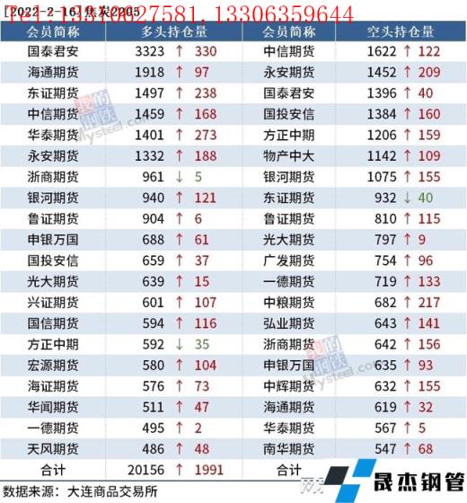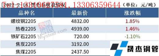 截至2月16日收盘,螺纹钢2205收4832元/吨,涨1.85%;热卷2205收4939元/吨,涨1.46%;铁矿石2205收720元/吨,跌1.1%。
