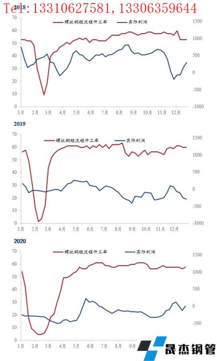 在去除春节、年末季节性停工以及赶工的扰动之后,实际利润与电炉开工率的相关性检验结果显示, 2018年两组数据的相关性在0.7以上,2019年的相关性在0.66左右,2020年在0.6左右,两组数据之间的关系较为密切,存在一定的相互影响。而另一方面,在前文中的假设条件之下,通过以实际利润为自变量的回归分析,结果表示在2018年3~11月的实际利润对电弧炉无缝向日葵色视频在线观看钢管厂家开工率有40%左右的解释能力,2019年4~11月有近50%的解释能力,2020年4~11月实际利润的解释能力稍弱,但依然存在一定性的影响。