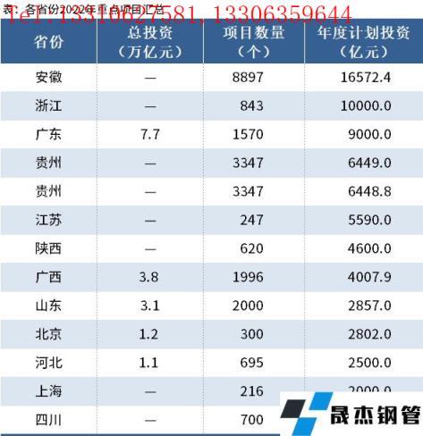 据不完全统计,截至2月16日,广东、江西、江苏、北京、上海、贵州、山东、浙江、四川、广西、陕西、河北、安徽等13个省份发布了2022年重点项目清单,合计共24778个项目。除四川以外,12省份年度计划投资额合计超7.28万亿元。