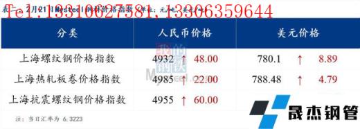 分地区方面,上海螺纹钢价格指数4932,上涨48.0;上海热轧板卷价格指数4985,上涨22.0。(单位:元/吨)