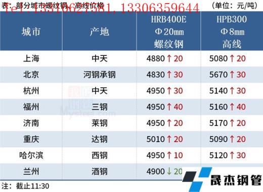 ◎北京:22日早盘建材市场价格涨30,河钢小螺纹4950-4970,大螺纹4810-4830,盘螺5010。(单位:元/吨)