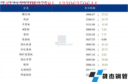 2月24日普钢绝对价格指数变化:综合指数5127.14,下跌26.07;螺纹钢指数4906.07,下跌27.23;线材指数5240.31,下跌23.75;热轧板卷指数4945.56,下跌41.16;冷轧板卷指数5504.34,下跌25.71;中厚板指数5131.98,下跌11.85。