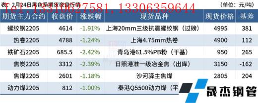 ◎2月24日,全国主港铁矿石成交62.80万吨,环比减8.3%;237家主流贸易商建材成交9.02万吨,环比减24.8%。