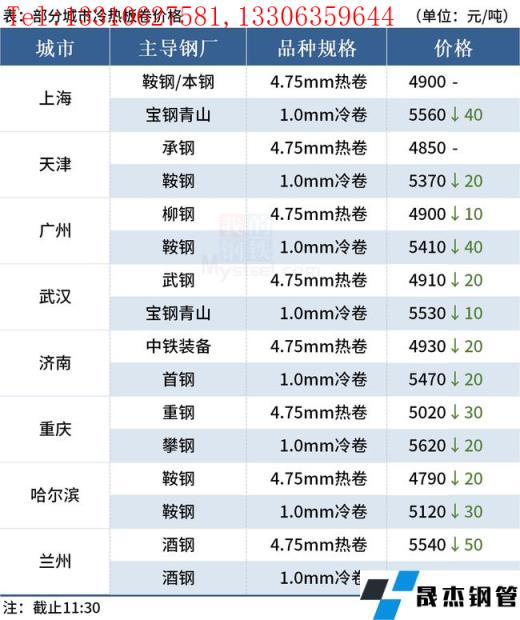 ◎乐从:25日早盘热卷市场价格下跌10,4.75以上普柳燕4900-4910,2.75普4970-5120锰5080-5100。(单位:元/吨)