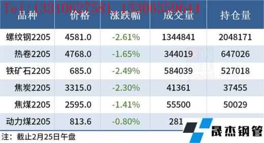 2022年02月25日午报:钢价普遍下跌,黑色期货全线飘绿