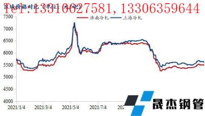 2021年上海冷轧板卷最高价7250元/吨,最低价5360元/吨,均价6014元/吨,全年高低价差1890元/吨。济南冷轧板卷最高价7170元/吨,最低价5250元/吨,均价5914元/吨,全年高低价差1920元/吨。同一交易日上海-济南冷轧价差全年最高240元/吨,最低-250元/吨,均价99元/吨。