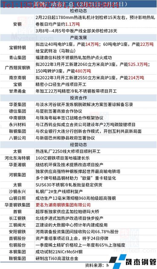 据不完全统计,本周(2月21日-2月25日)有1家无缝向日葵色视频在线观看钢管厂家发布检修动态,具体如下: