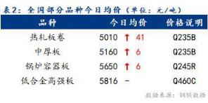 今日全国部分品种均价回升,整体涨幅为6~41元/吨。