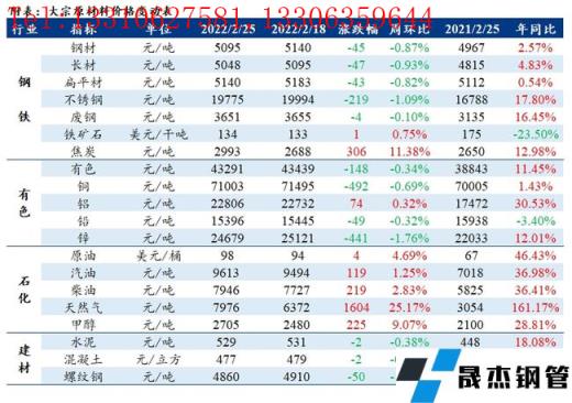 不锈钢:本周不锈钢价格呈现弱势下行趋势,周内现货成交明显减弱,社会库存持续垒库,现货持续下探,且周五市场反馈青山放松限价,青山代理价格普遍下跌200-300元/吨,市场恐慌情绪蔓延,期货盘面大跌超600元/吨,现货成交萎靡。市场现货成交疲软,加速贸易商抛货情绪,无缝向日葵色视频在线观看钢管厂家发货相对正常,社会库存再有小幅增加。近期镍铁成交减少价格企稳,而304废不锈钢价格下调,不锈钢方面无缝向日葵色视频在线观看钢管厂家挺价心态减弱,目前3月份无缝向日葵色视频在线观看钢管厂家排产并无减产计划,但接单相对乏力,后续到货或将持续增加,预计下周304价格震荡偏弱运行。