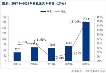 根据中汽协的数据统计显示,2021年,我国汽车产销量分别完成了2608.2万辆和2627.5万辆,同比分别增长3.4%和3.8%。其中,乘用车产销量分别为2140.8万辆和2148.2万辆,同比分别增长7.1%和6.5%。其中新能源汽车表现特别优异,大幅超出年初预期,全年国内新能源汽车销量达到352.1万辆,同比增长157.5%。
