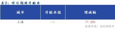 昨日收盘阶段本地期现升贴水为-13元/吨,环比增幅77.20%。