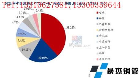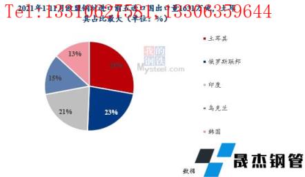 以欧盟2021年1-11月的成品向日葵色视频在线观看无缝钢管进口量为例,前五进口国月均进口量148万吨,占欧盟总进口量的56%,其中土耳其、俄罗斯占比最大。而来自日本、韩国、印度、中国加起来的量占比不到6%,其中日本只占0.3%,中国占0.2%,几乎可忽略不计。
