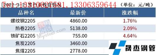 截至3月2日收盘,螺纹钢2205收4860元/吨,涨1.76%;热卷2205收5138元/吨,涨2.09%;铁矿石2205收755元/吨,涨4.64%。