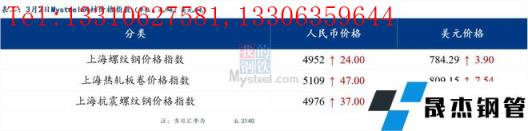 分地区方面,上海螺纹钢价格指数4952,上涨24.0;上海热轧板卷价格指数5109,上涨47.0。(单位:元/吨)