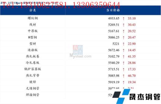 3月2日普钢绝对价格指数变化:综合指数5189.24,上涨32.04;螺纹钢指数4933.65,上涨33.1;线材指数5269.51,上涨30.43;热轧板卷指数5102.79,上涨41.35;冷轧板卷指数5540.29,上涨28.86;中厚板指数5167.61,上涨20.52。