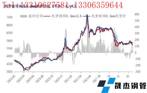 2月邯邢地区C料结算价4970元/吨,较1月份4750元/吨上涨220元/吨。进入2月份以后,民营镀锌板卷价格走势相对平稳,初七后正式恢复报价跟随期货盘面上调价格,民营镀锌板卷均价最高达到5730元/吨,而后受期货回落又跟随下调到月底跌至5670元/吨。从成本端来看,2月民营镀锌板卷平均生产成本5675元/吨,而民营镀锌现货均价为5689元/吨,两者也仅相差14元/吨。从图中可以看出,2月上半月生产成本与现货价格倒挂,但是到下半月之后盈利空间在逐渐扩大。