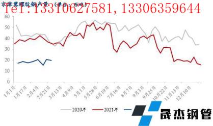 2月份全国各地市场价格均是在迎来开门红后又大幅下跌,全月价格累计涨幅均在100元/吨以内,区域间价差较之前基本无变化,目前广州-北京价差在300元/吨左右,此价差略低于2020年、2021年同期水平,且结合无缝向日葵色视频在线观看钢管厂家的政策以及运费来看此价差也不足以吸引北方区域资源南下广州。目前杭州-北京价差100元/吨左右,因京津冀区域在产无缝向日葵色视频在线观看钢管厂家较少,且无缝向日葵色视频在线观看钢管厂家产量处于偏低水平,因此京津冀建材市场处于低供给情况,无向外分流的压力,加之与其他区域的价差不大,故京津冀建材市场资源向华南、华东区域分流量不多。基于目前东北区域下游需求尚未启动,且建龙系无缝向日葵色视频在线观看钢管厂家冬储资源尚未投放结束,目前仍处于继续投放阶段。