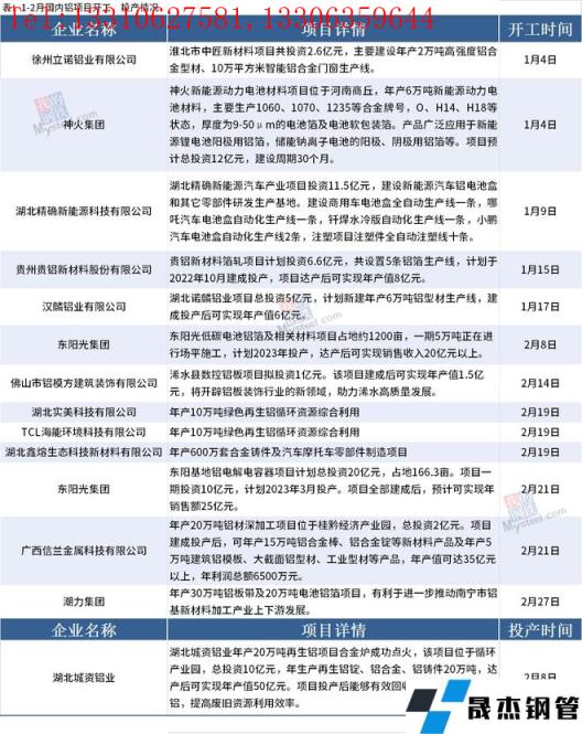 免责声明:本网站(山东聊城向日葵视频网站无缝钢管厂www.dianmore.com)刊载的“1-2月国内铝项目开工、投产情况”等均源于网络,版权归原作者所有,且仅代表原作者观点,本文所载信息仅供参考。转载仅为学习与交流之目的,如无意中侵犯您的合法权益,请及时联系删除。本网站刊登此篇文章并不意味着本站赞同其观点或证实其内容的真实性,向日葵视频网站不对其科学性、严肃性等作任何形式的保证。如果侵犯了您的版权,请尽快联系向日葵视频网站予以撤销,谢谢合作!